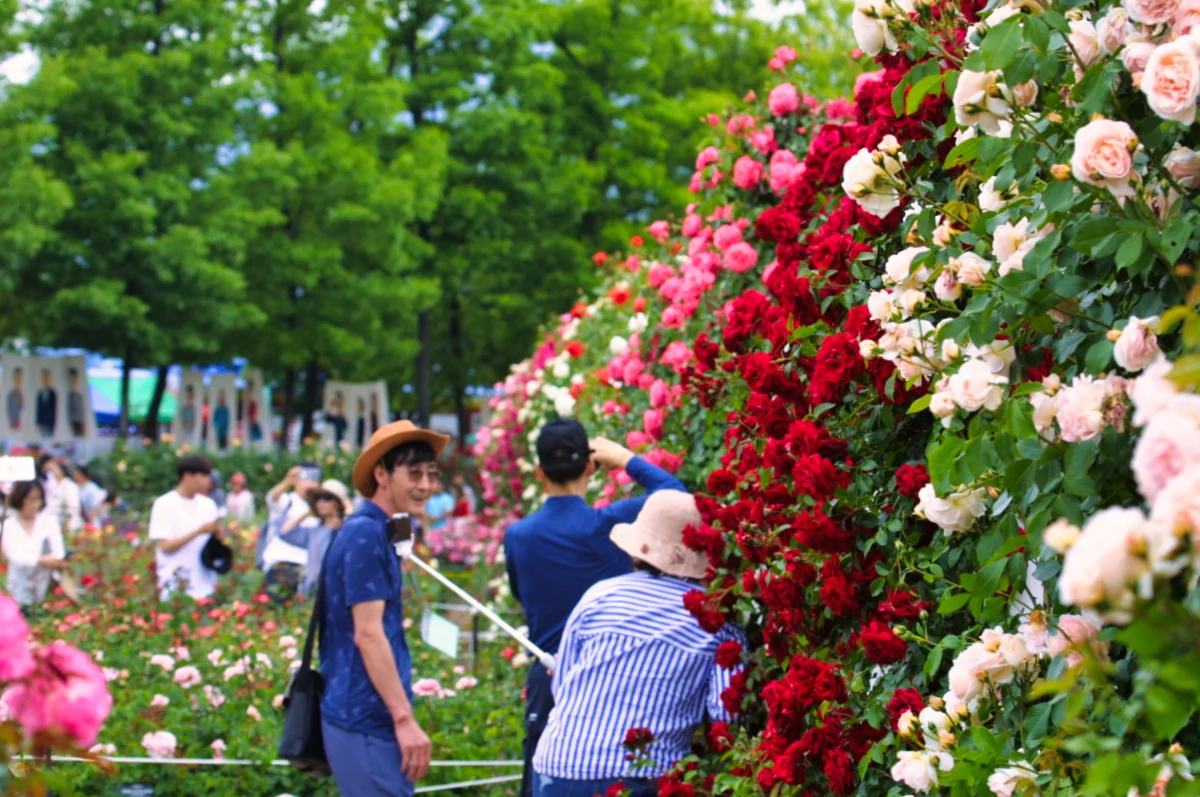 날씨가 흐리고 대기질이 좋지 않았음에도 곡성에는 다양한 장미꽃을 감상하려는 관람객들로 활기찬 분위기를 형성했습니다.