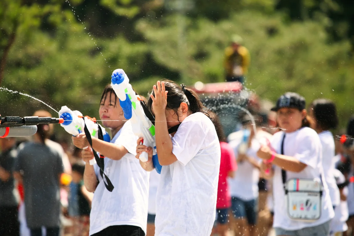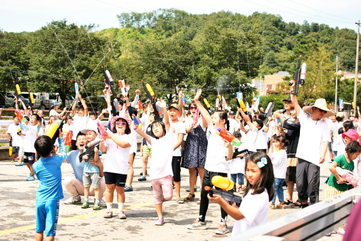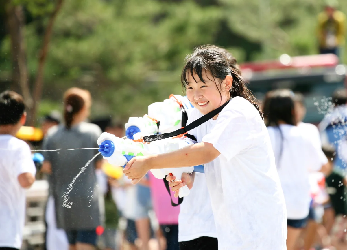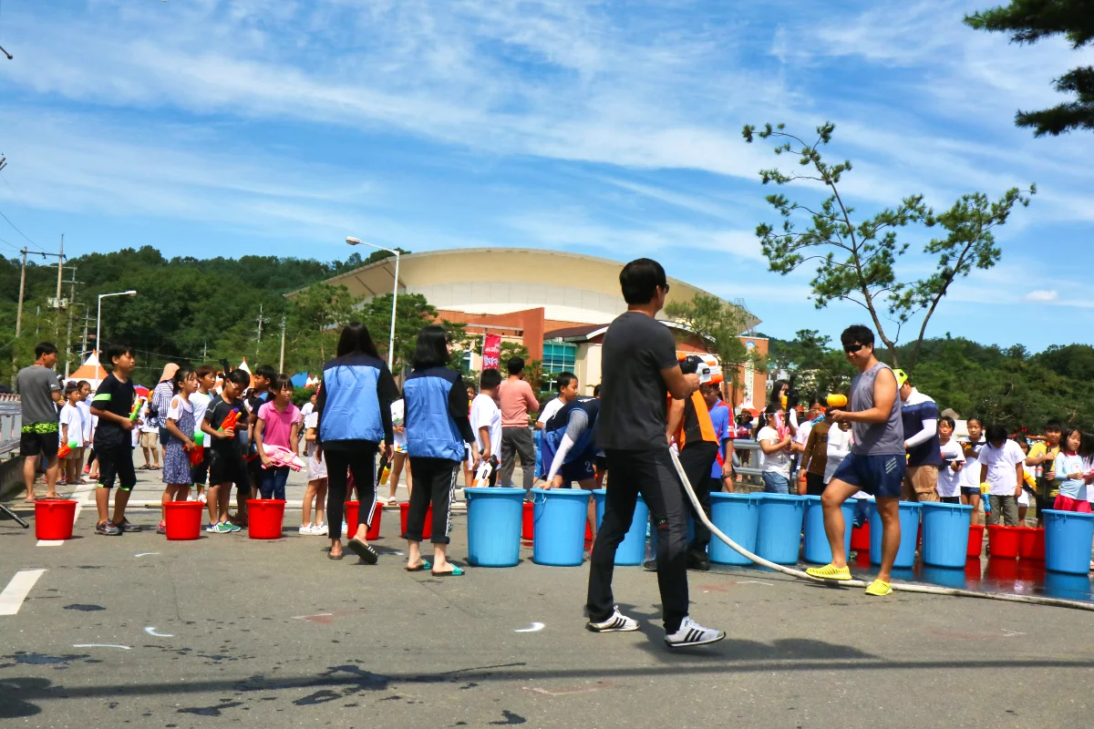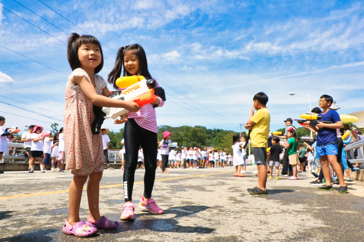 그리고 괴산을 흐르는 동진천의 다리위에서는 부모들과 아이들이 분주히 무언가를 준비하고 있었습니다. 바로 ‘물총 놀이’였습니다.