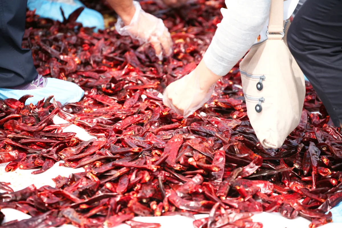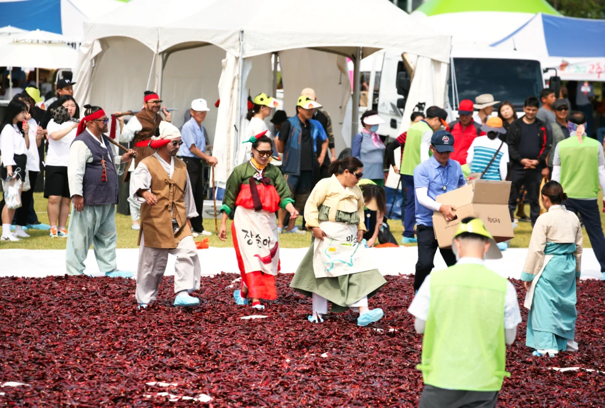 이벤트는 매우 간단했습니다. 행사에 참여를 한 관람객들이 덧신을 신고서 들어가서 고추안에 숨겨놓은 반지를 찾는 것입니다. 시민들과 관람객들이 고추를 비비면서 분주히 움직였지만, 지켜보는 사람들은 ‘매워서 눈물이 날까봐’걱정하는 태도였습니다.