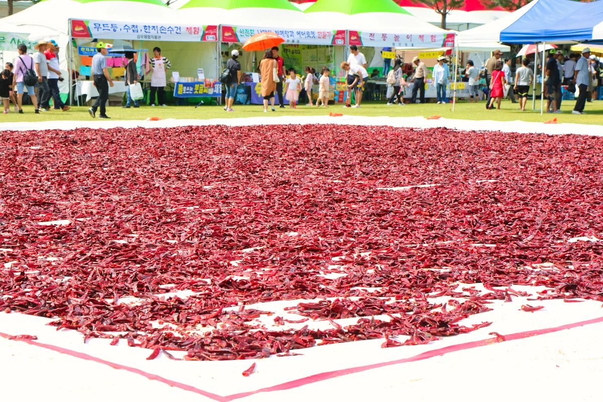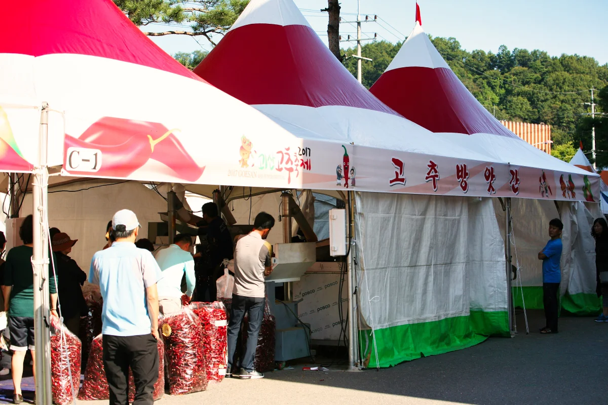 그리고 고추 축제에서 눈여겨볼 부분은 괴산의 특산물인 고추를 현장에서 직접 구매할 수 있다는 점입니다. 관람객은 신선하고 청결한 고추를 구매해서 즉석에서 가루로 빻을 수 있어서 고객들에게 높은 점수를 받지 않나 싶습니다.