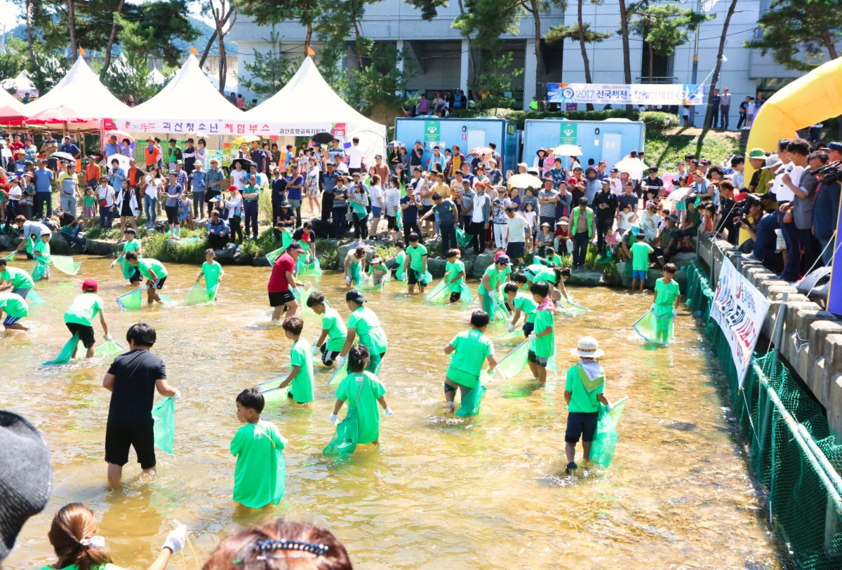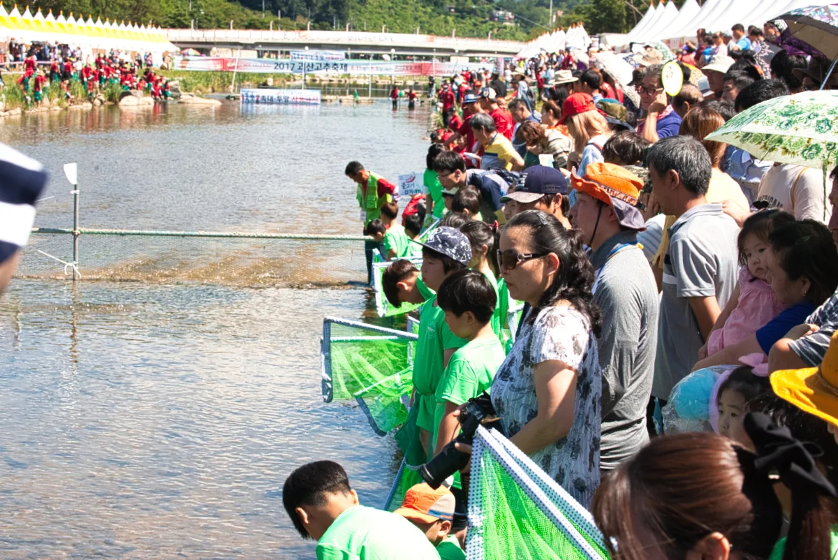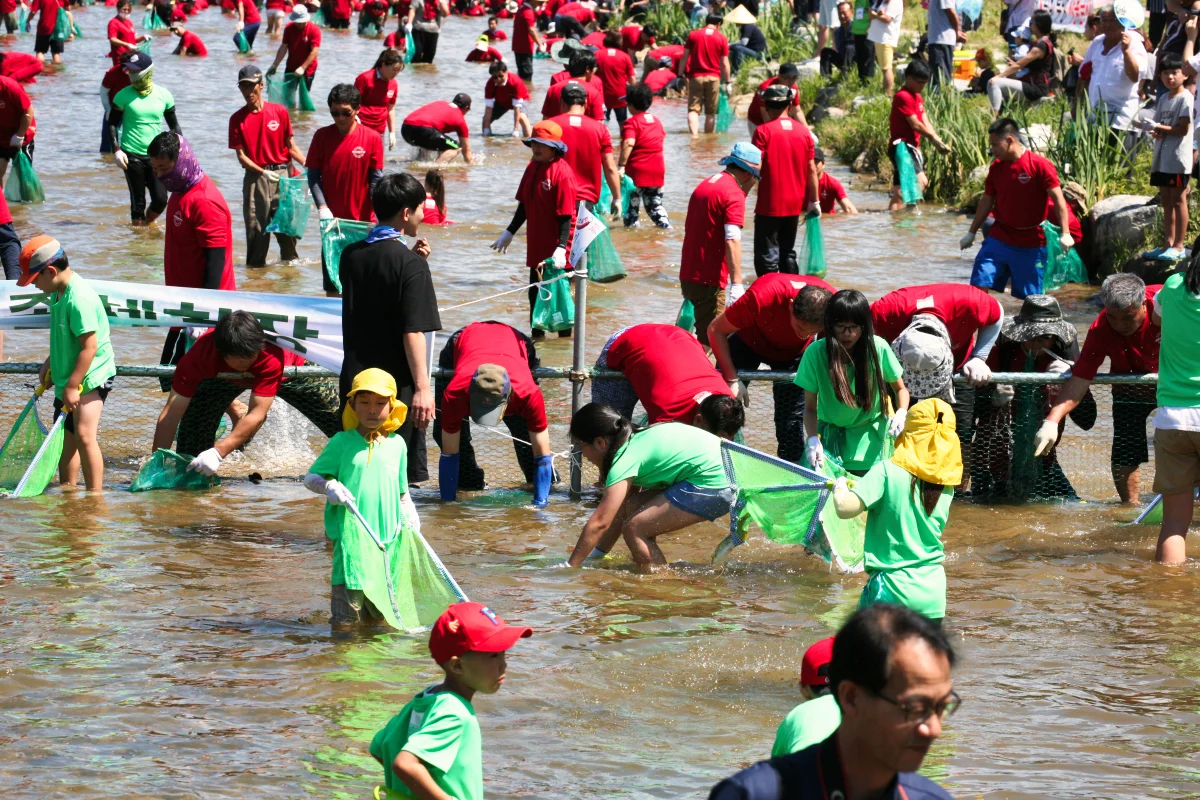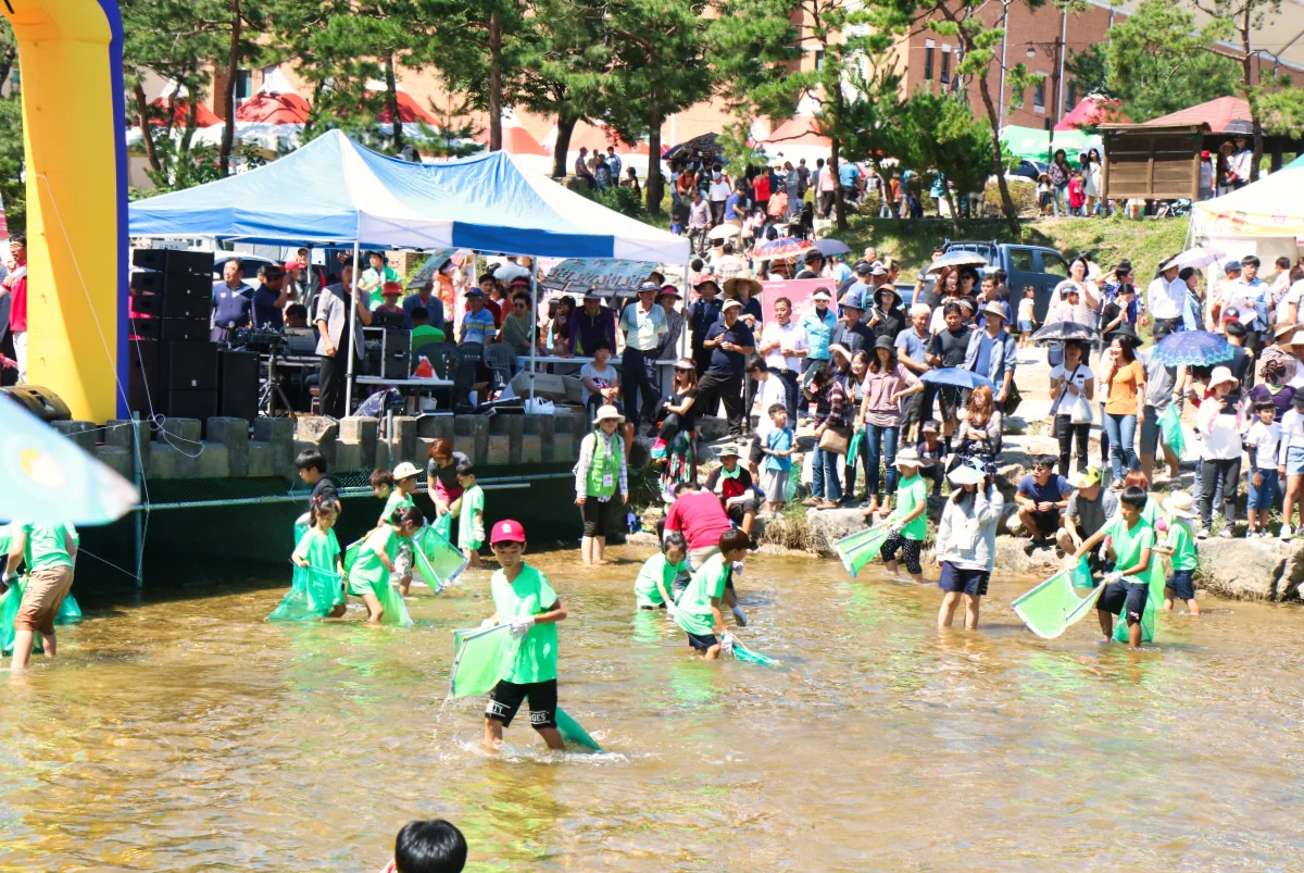 드디어 이벤트가 시작되자, 아이들과 어른들 할 것 없이 동진천(東津川) 안으로 들어가서 물고기를 잡기 시작했습니다. 특히 경품도 걸려 있어서, 눈에 불을 켜고 물고기를 잡기 시작했는데, 문제는 물고기들이 대부분 메기여서 잡으면 미끄러지고 넘어지는 촌극도 벌어져서 주변 사람들을 즐겁게 하기도 했습니다.