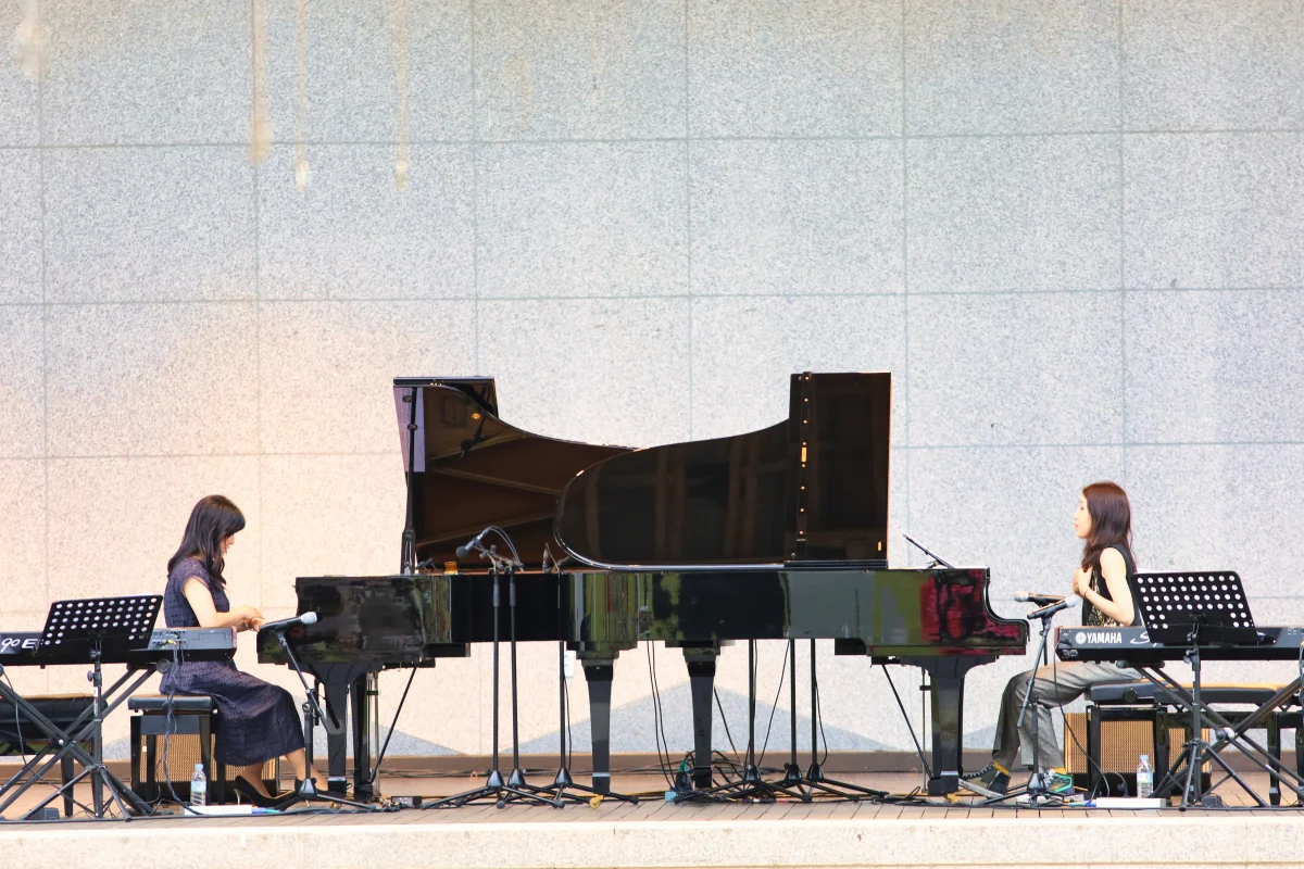 피아노 연주의 절정에 다다르며, 피아니스트들은 마무리가 가까워졌음을 알리는 듯 서로 호흡을 맞춰 가파른 속도로 연주를 이어갔습니다.