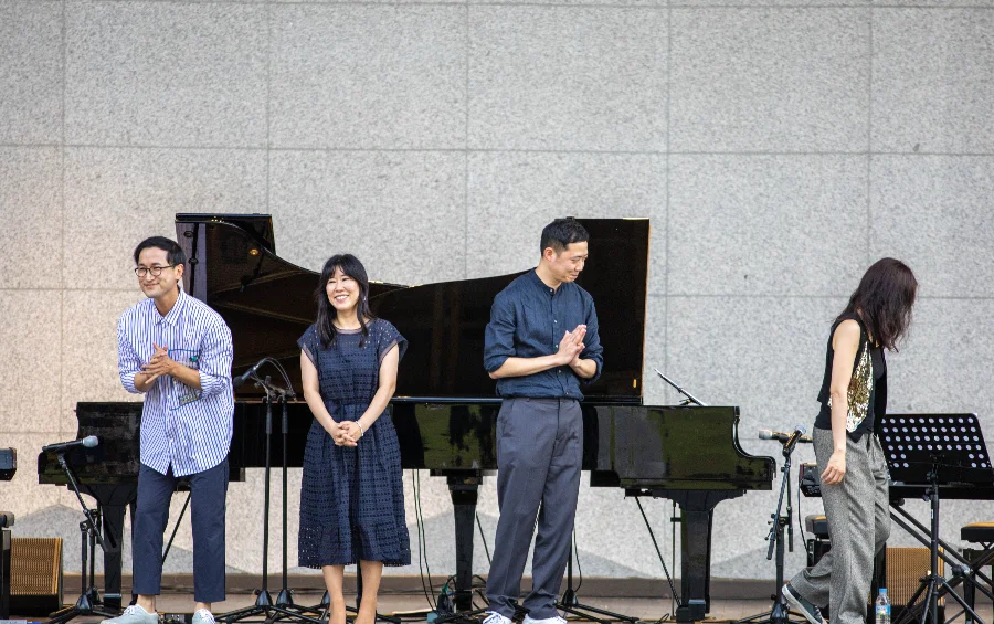 피아니스트들의 소개가 끝나자마자 본격적인 피아노 연주가 시작되었습니다. 실내에서 듣는 피아노 소리와는 다른 야외에서의 소리는 주변의 잡음과 함께 투박한 소리처럼 느껴졌지만, 피아노를 연주하는 분들의 손끝에서 “오늘 열심히 연주 하자”라는 느낌을 받을 수 있었습니다.