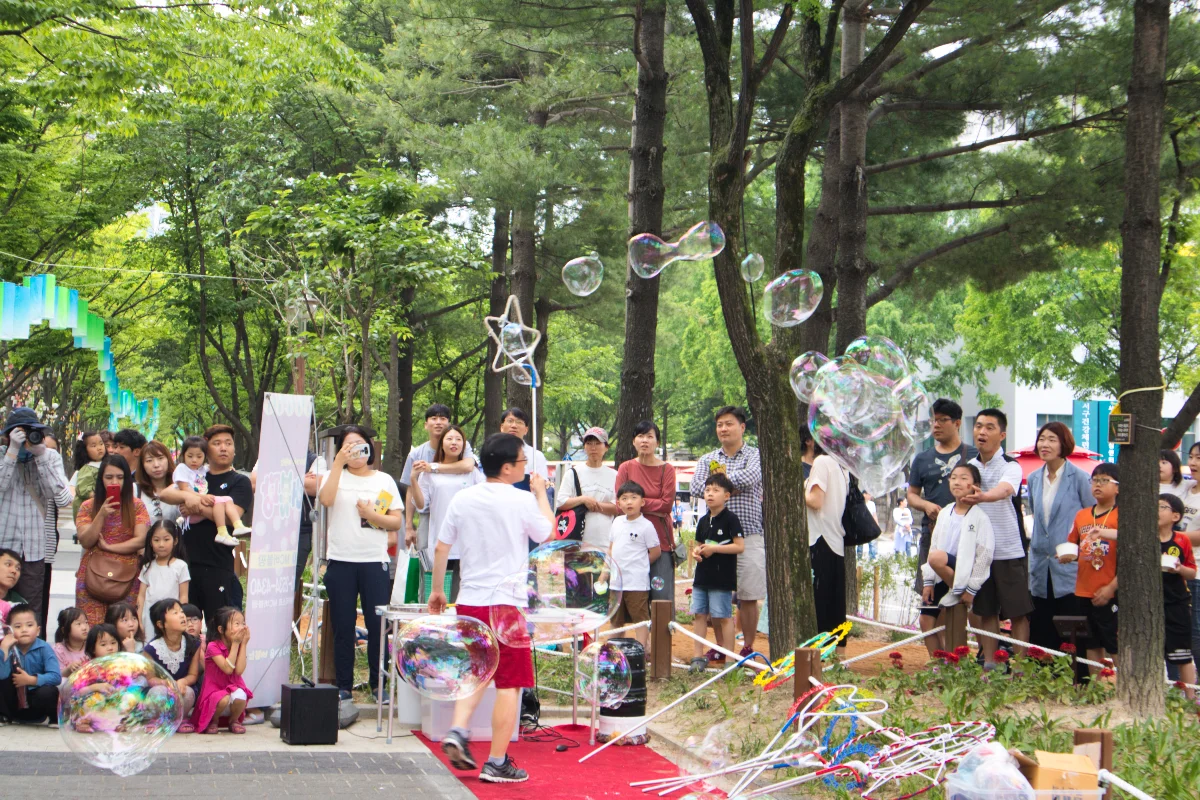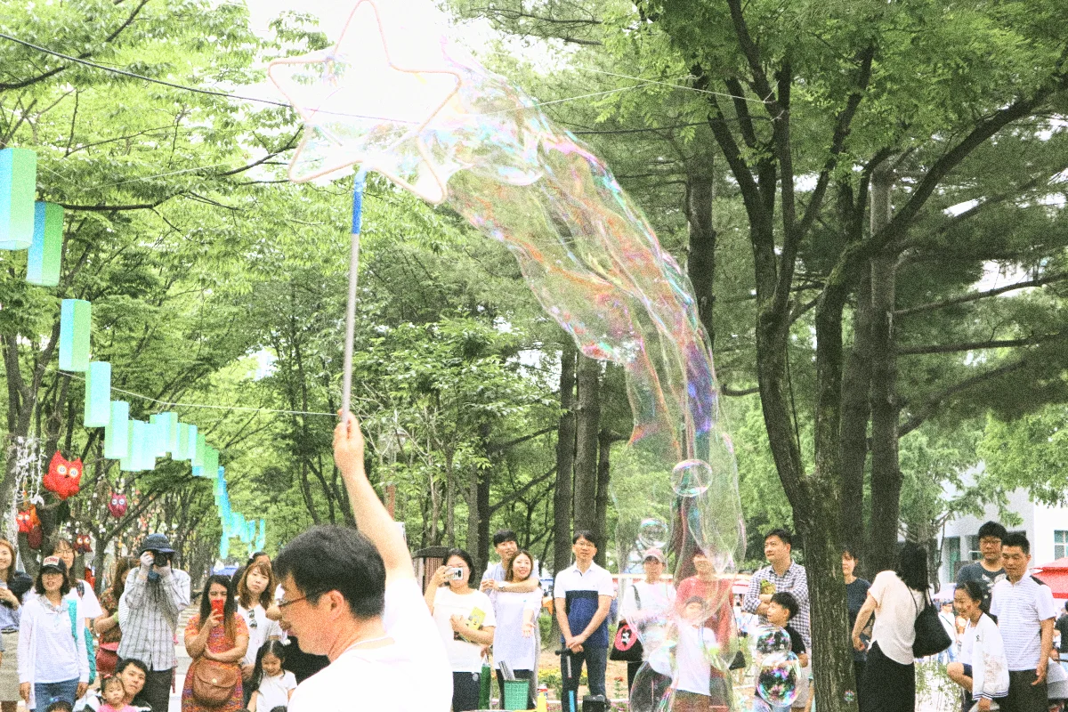 이 날 업무차 열차를 타고 대전에 방문했었는데, 길을 가다 우연히 행사 모습을 보게 되었습니다. 한 버블 마술사가 막대기를 이용해서 거품 풍선을 만드는 모습에 매료되어, 저도 모르게 구경을 하게 되었습니다.