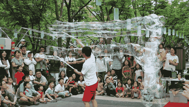 비록 공원의 한구석에서 벌어진 작은 행사였지만, 버블쇼를 관람하기 위해 모여든 관람객들의 얼굴에 미소가 띄는 것을 보고서는, 저도 얼굴에 미소를 지었고, 사람들에게서 생기(生氣)를 느낄 수 있었습니다.