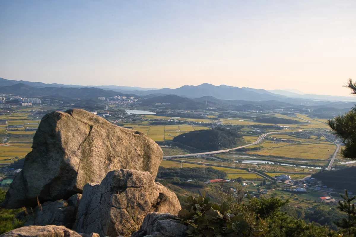 추수철인 가을이 얼마 남지 않은 시기여서 그런지 산 밑에 보이는 들판의 벼들은 조금씩 노랗게 물들어가고 있었습니다.